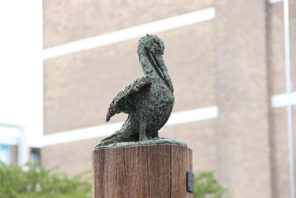 Onder moeders vleugels, een beeldhouwwerk van Tosca van den Haak